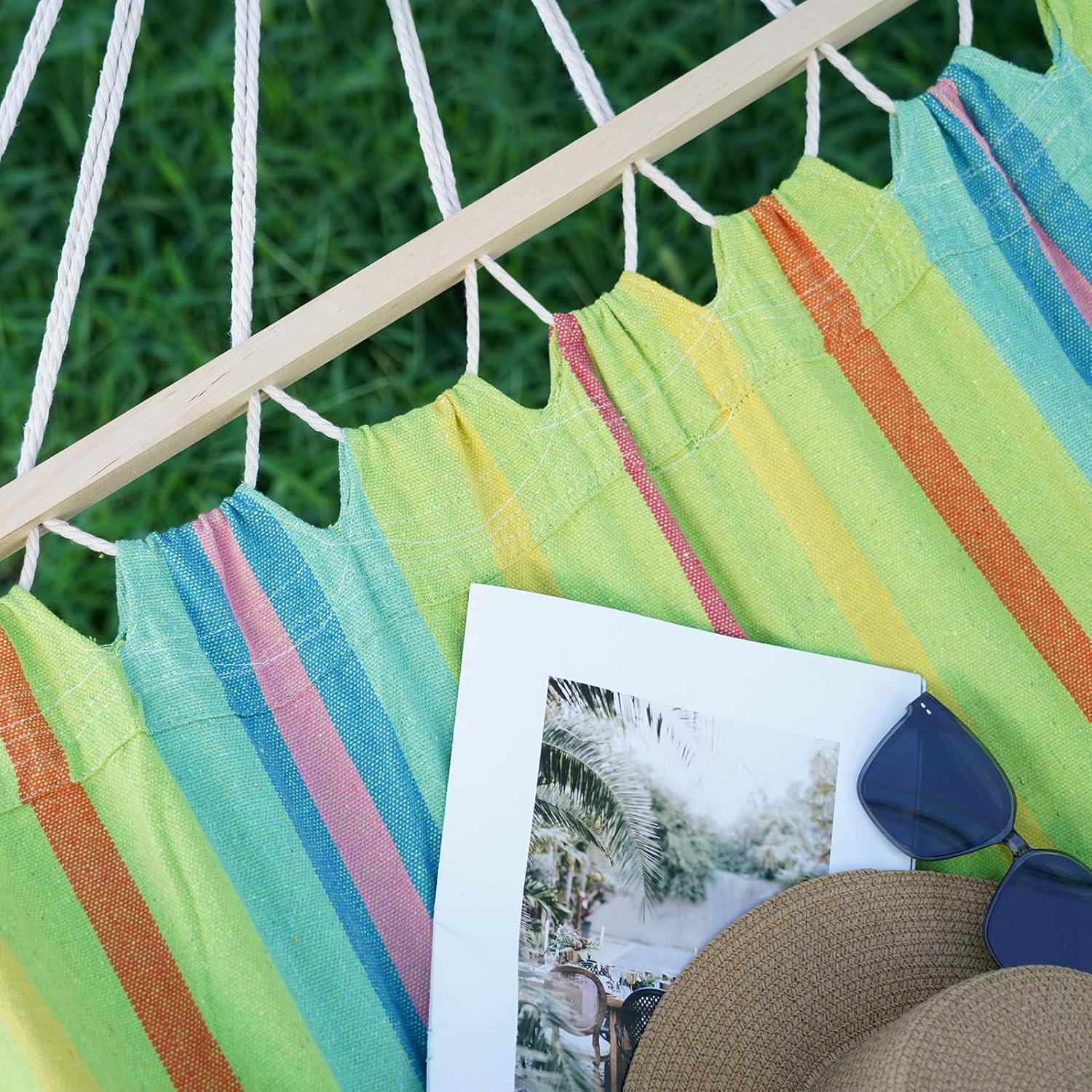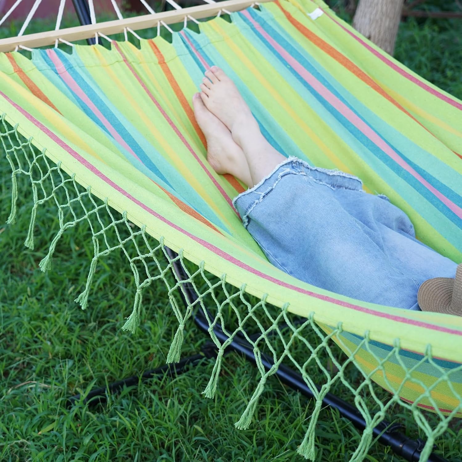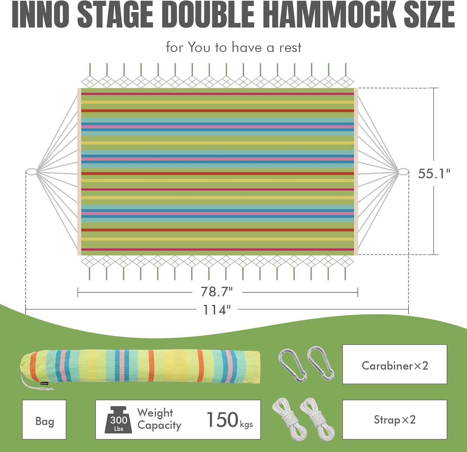 Equipped with sturdy tree straps for easy installation and maximum stability, this double hammock is designed for convenience and durability. Whether you’re seeking a peaceful retreat in your backyard or a cozy spot to lounge during your outdoor adventures, this hammock is the perfect companion for all your relaxation needs.