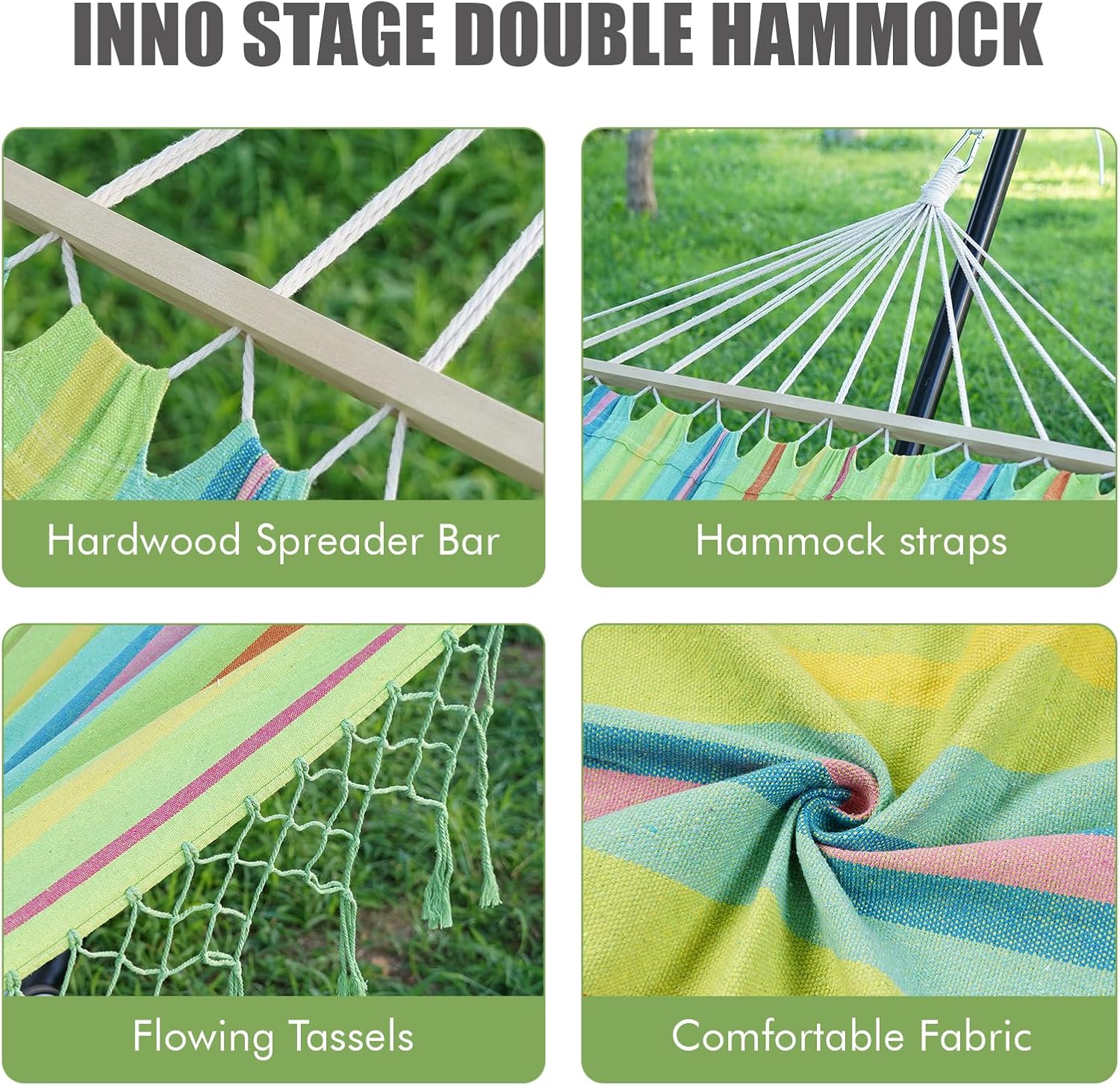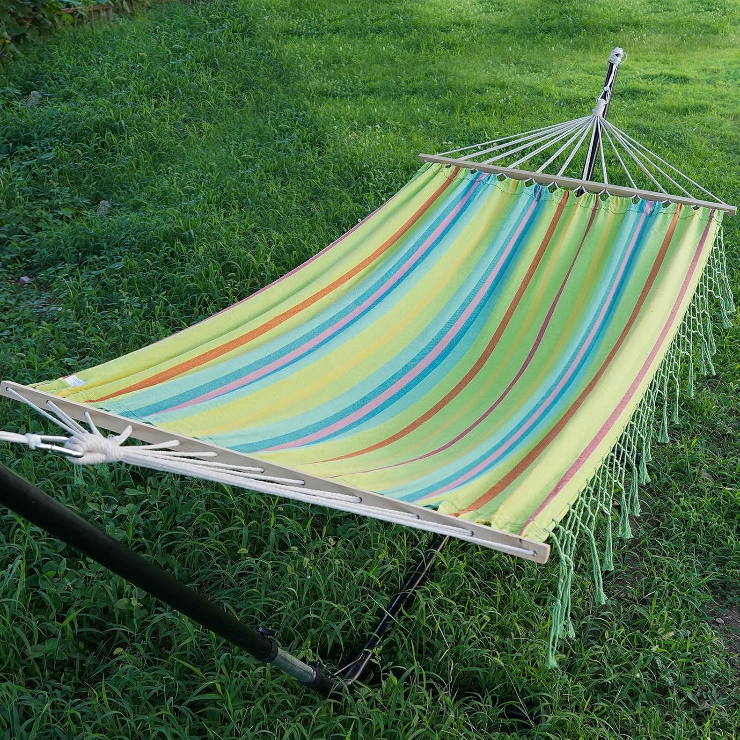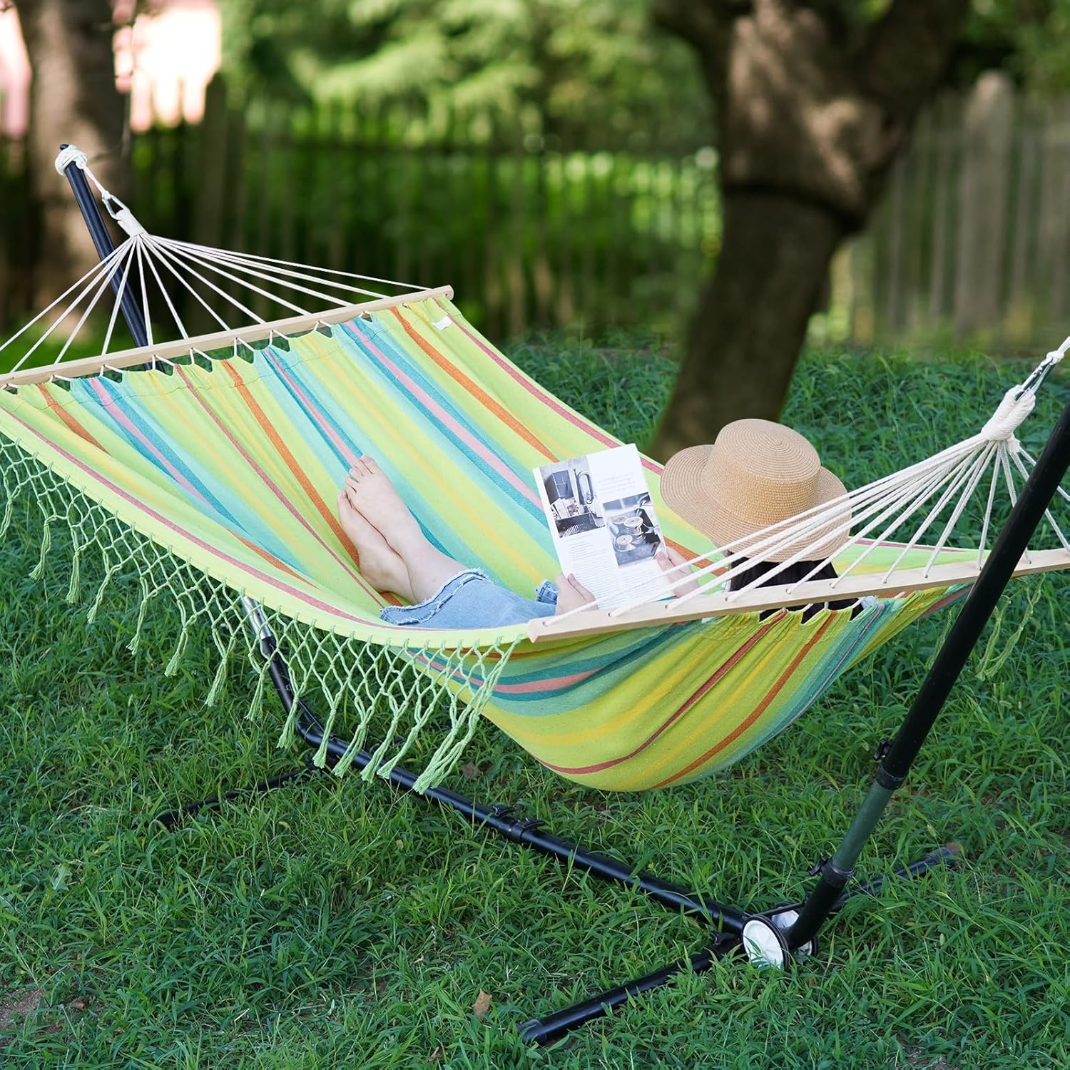 Equipped with sturdy tree straps for easy installation and maximum stability, this double hammock is designed for convenience and durability. Whether you’re seeking a peaceful retreat in your backyard or a cozy spot to lounge during your outdoor adventures, this hammock is the perfect companion for all your relaxation needs.